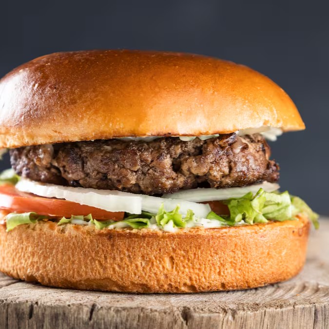 Pão Brioche macio e levemente tostado, maionese gourmet artesanal, burguer de artesanal de fraldinha 120g, queijo mussarela, alface, tomate e cebola.
