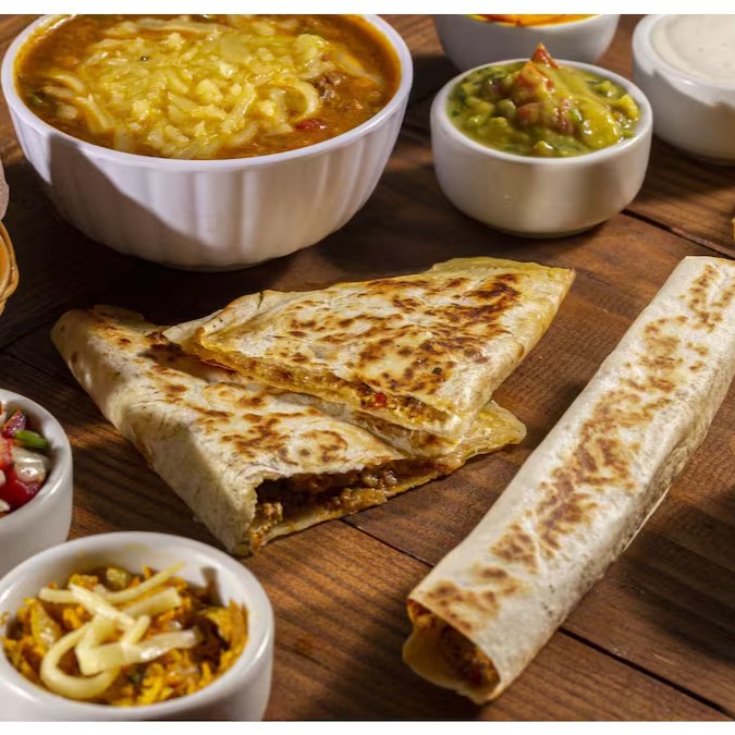 Aproveite todos os pratos da culinária mexicana para 2 ou até 3 pessoas: Rodízio: 2 Burritos 200g, 2 Quesadillas 200g, 1 Chilli-Beans com porção de nachos e mais 2 molhos a sua escolha (Sour Cream, Salsa Mexicana, Guacamole e Dip-Cheddar),e ainda 2 tacos com recheio a sua escolha e acompanham os molhos (Sour Cream, Salsa e Guacamole).