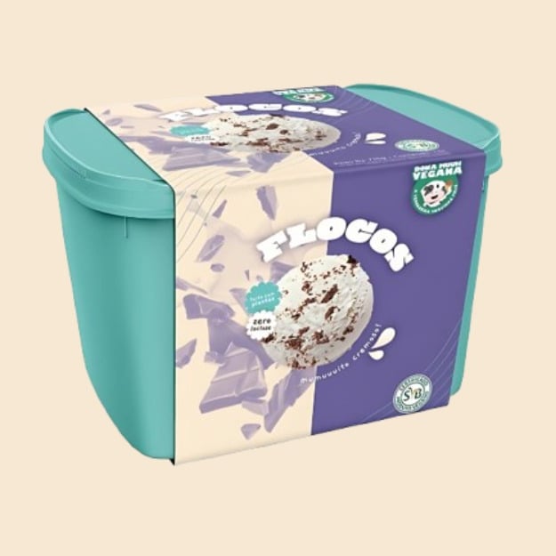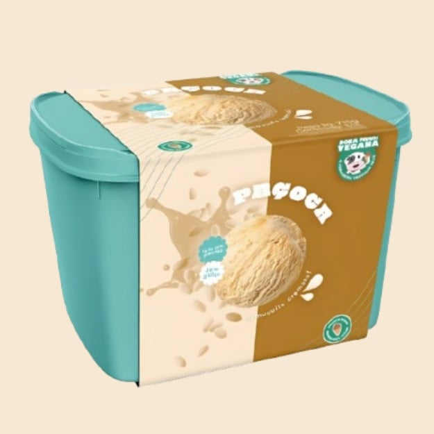 Sorvete vegano sabor paçoca. alérgicos: não contém glúten. não contém lactose. contém derivados de soja.