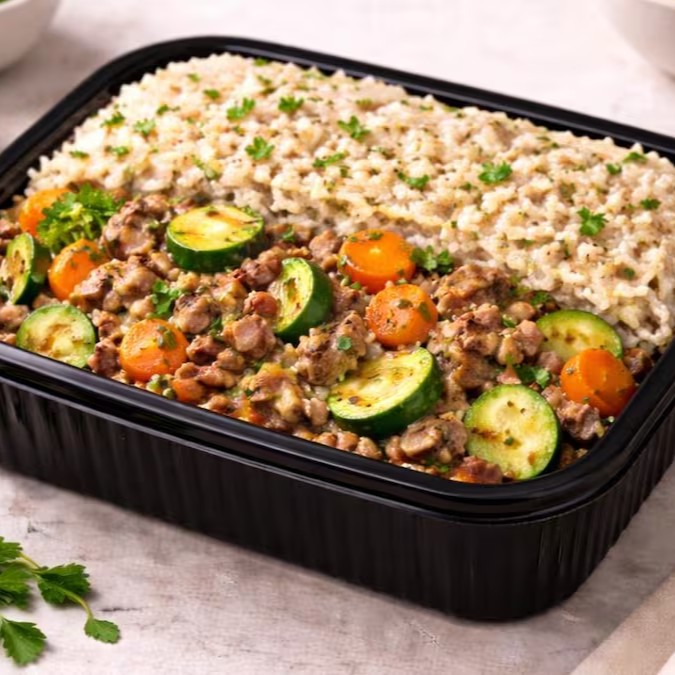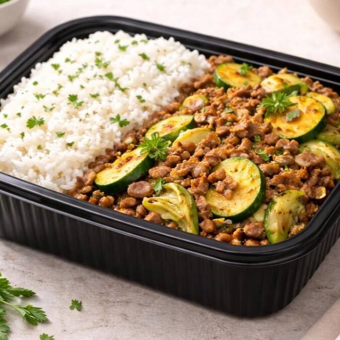 Carne Moída Com Legumes( Abobrinha E Cenoura )+arroz Integral