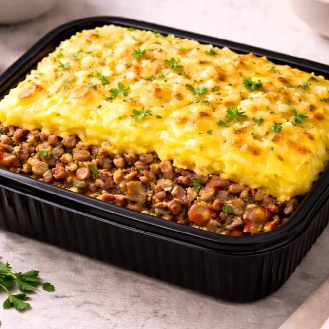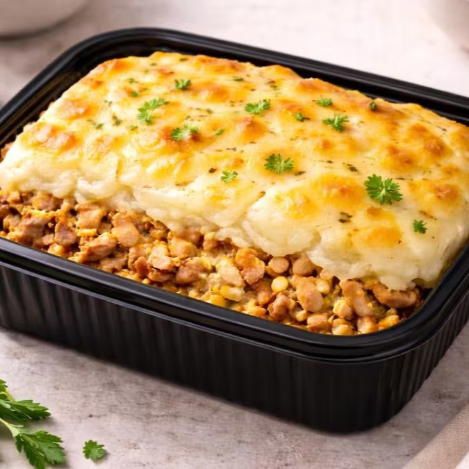 Escondidinho de mandioquinha com carne moída. Porção contém 350g aprox