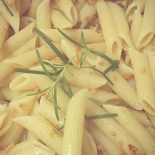 Delicioso Macarrão Grano Duro Refogado No Azeite E Alo Fritinho Acompanhado De Pármesão