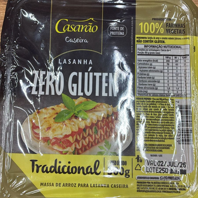 Massa Para Lasanha Sem Glúten Tradicional 300gr