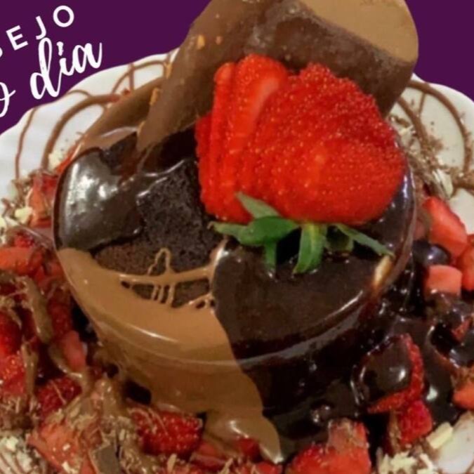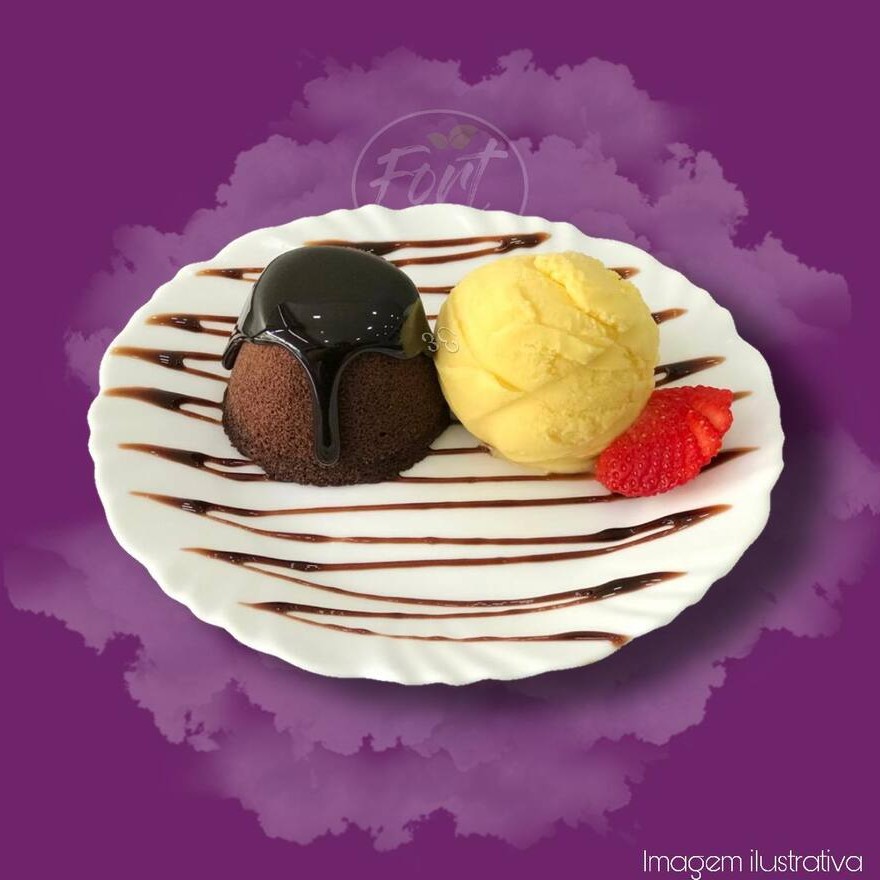 Nosso bolinho é fofinho, quentinho recheado com calda de chocolate, morango e um delicioso Picolé cremoso coberto com uma casquinha crocante de chocolate. Atenção: o Produto não é enviado em porcelana, imagem ilustrativa