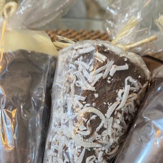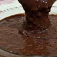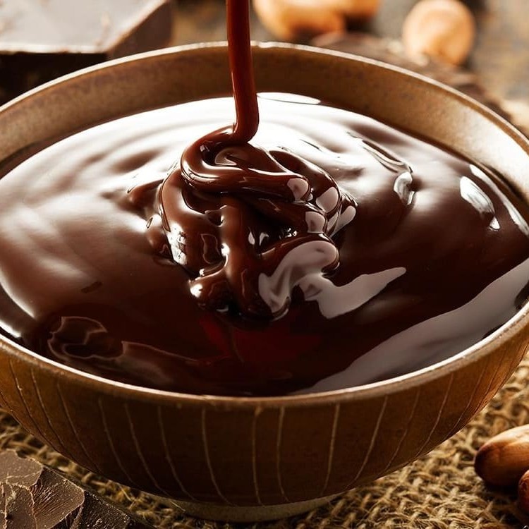 Cobertura bem concentrada de fondue em chocolate nobre.
