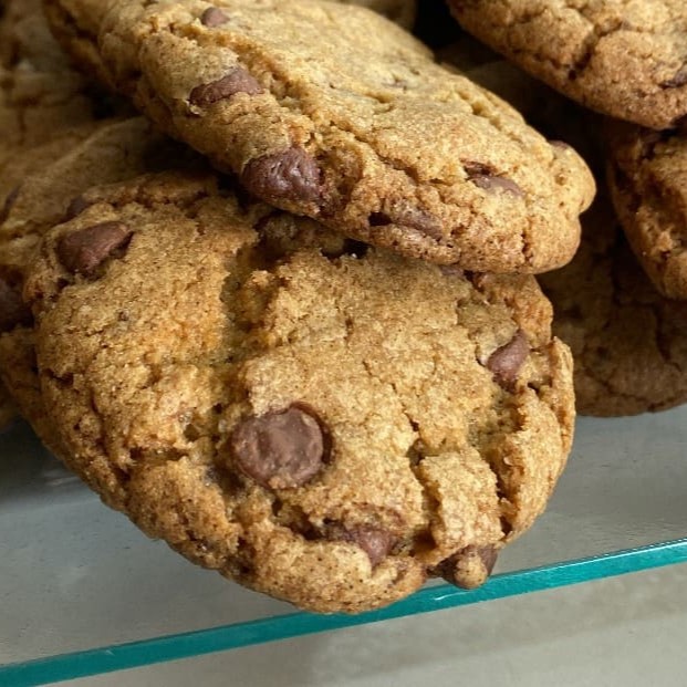 Cookies sabor baunilha e com gotas de chocolate. Pacote com 2 unidades de 30 Gr