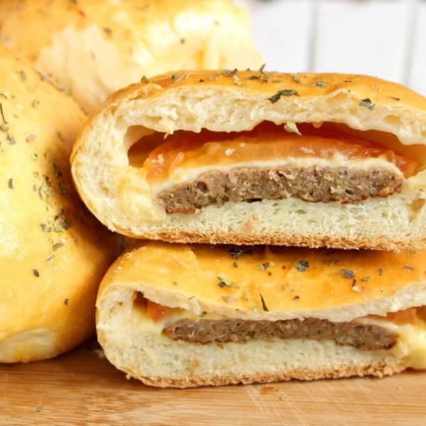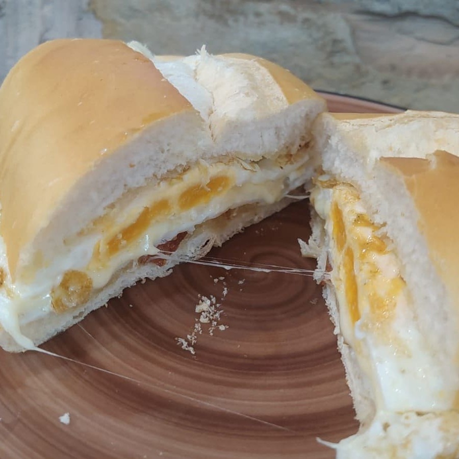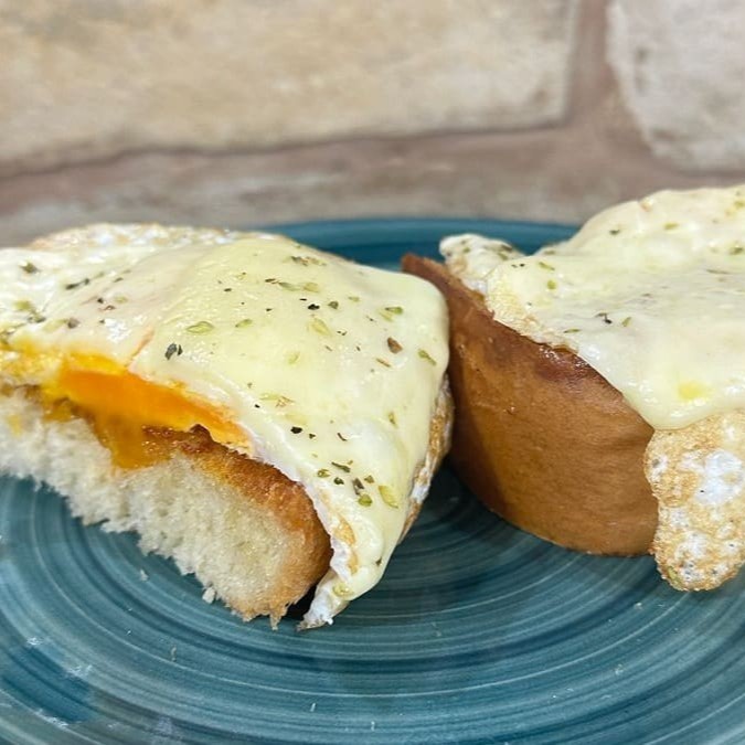 Fatia generosa de pão caseiro, Ovo, mussarela