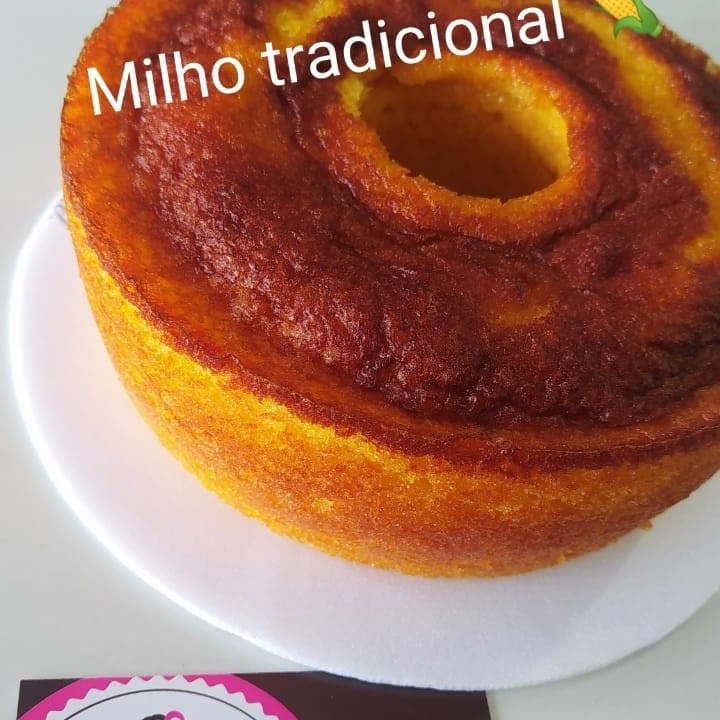 Bolo de milho. Bolo serve bem 4 pessoas, feito na forma de 18 cm