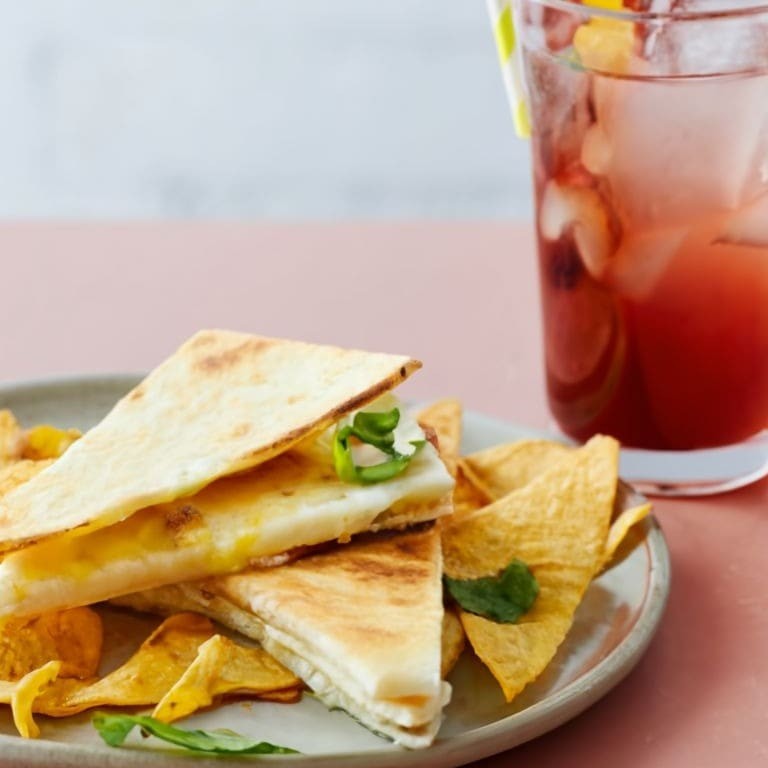Apresentamos nosso irresistível 'Triple Quesadillas & Totopos' da categoria Combos. Aprecie três deliciosas Quesadillas Tradicionais generosamente recheadas com um mix de queijos nobres, cuidadosamente montadas em tortillas de 15 cm, trazendo a autenticidade da cozinha mexicana. Acompanha Totopos crocantes, pesando 50g, perfeitos para um saboroso petisco. Para completar sua experiência gastronômica, escolha entre uma refrescante Pink Lemonade ou um chá gelado, servidos geladíssimos. Um prato completo e saboroso, feito para encantar seu paladar!