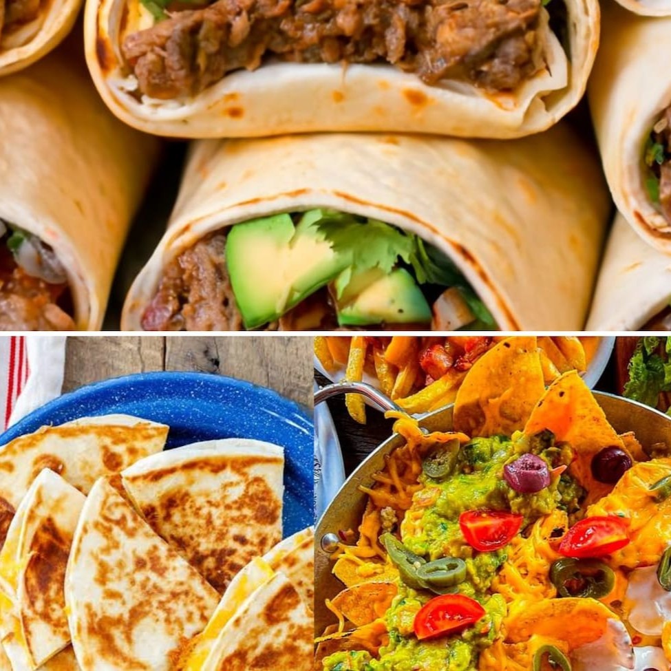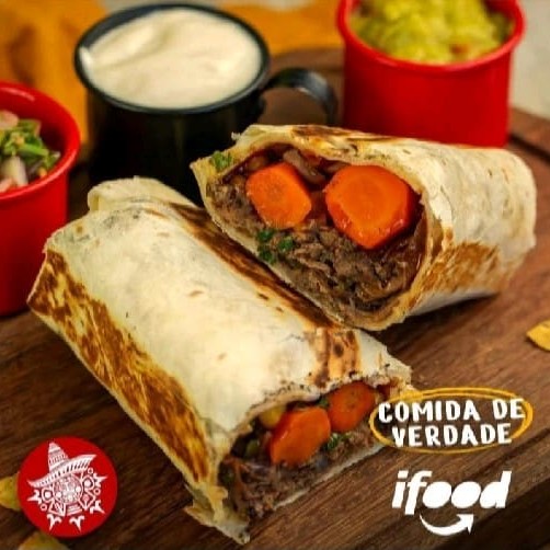 Mini Burrito (10 unidades, montado na tortilla de 20cm) + Quesadilla Tradicional Mix de Queijos (10 unidades, montada na tortilla de 15cm)+ Totopos (400g) + 6 salsas: Guacamole, Sour Cream, Barbecue, Creme de Queijo, Chilli Beans e Pico de Gallo.