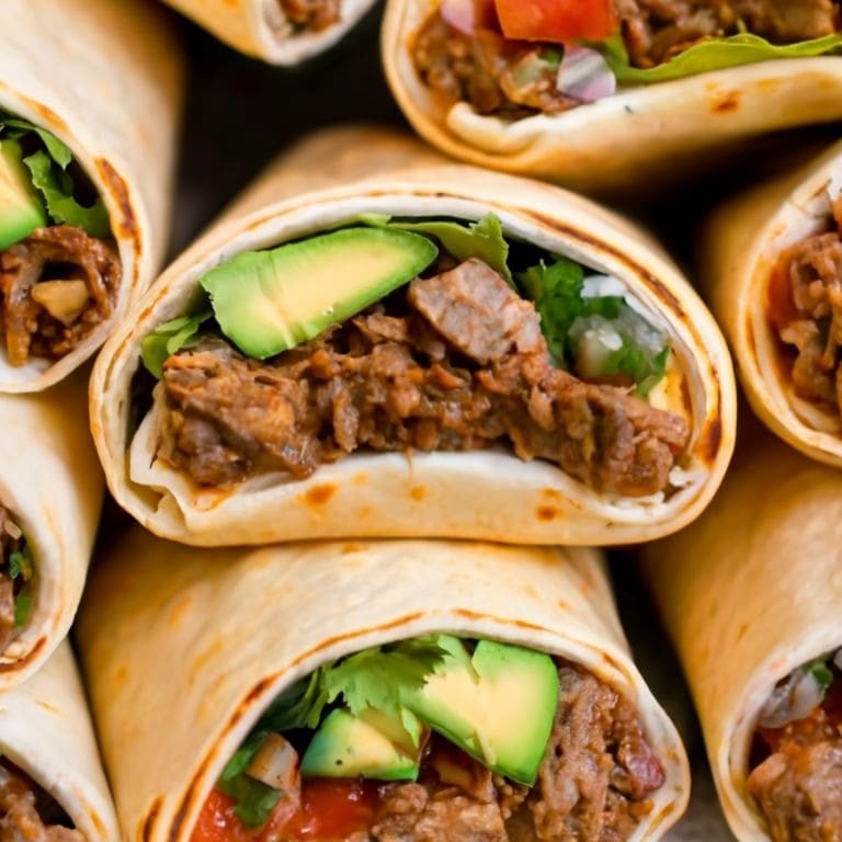 Mini Burrito (8 unidades, montado na tortilla de 20cm) + Totopos (200g) + Pink lemonade ou chá gelado.