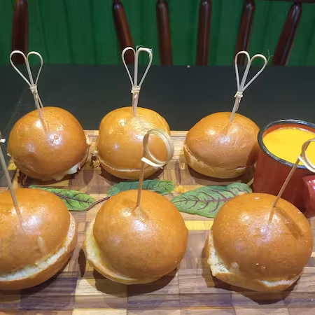 6 mini sanduiches, no pão bolinha, com mix de queijo e molho chimichurri da casa.