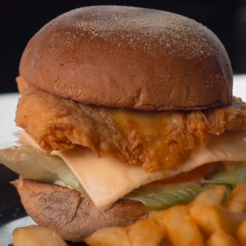 Crochicken(Pão Australiano, filé de peito de frango empanado no estilo coreano, 3 molhos especiais da casa, tomate, alface americana, cebola e queijo prato) ( Carnes )