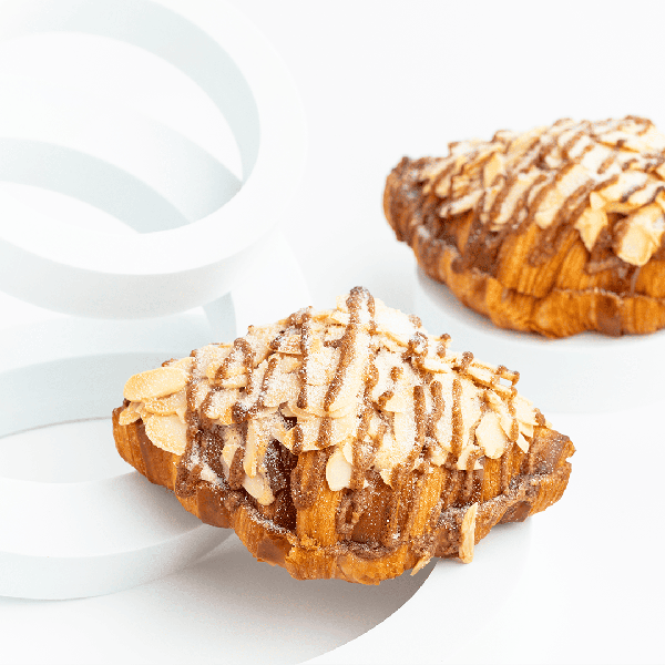 Croissant crocante, recheado com creme de chocolate e amêndoas e coberto com Lâminas de amêndoas