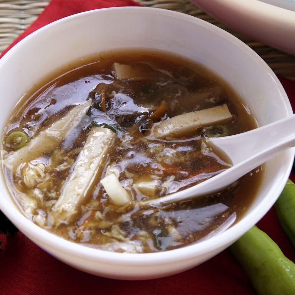 Uma sopa exótica com um mix de carnes e legumes, tofu e bambu, perfeita para aquecer e surpreender o paladar.