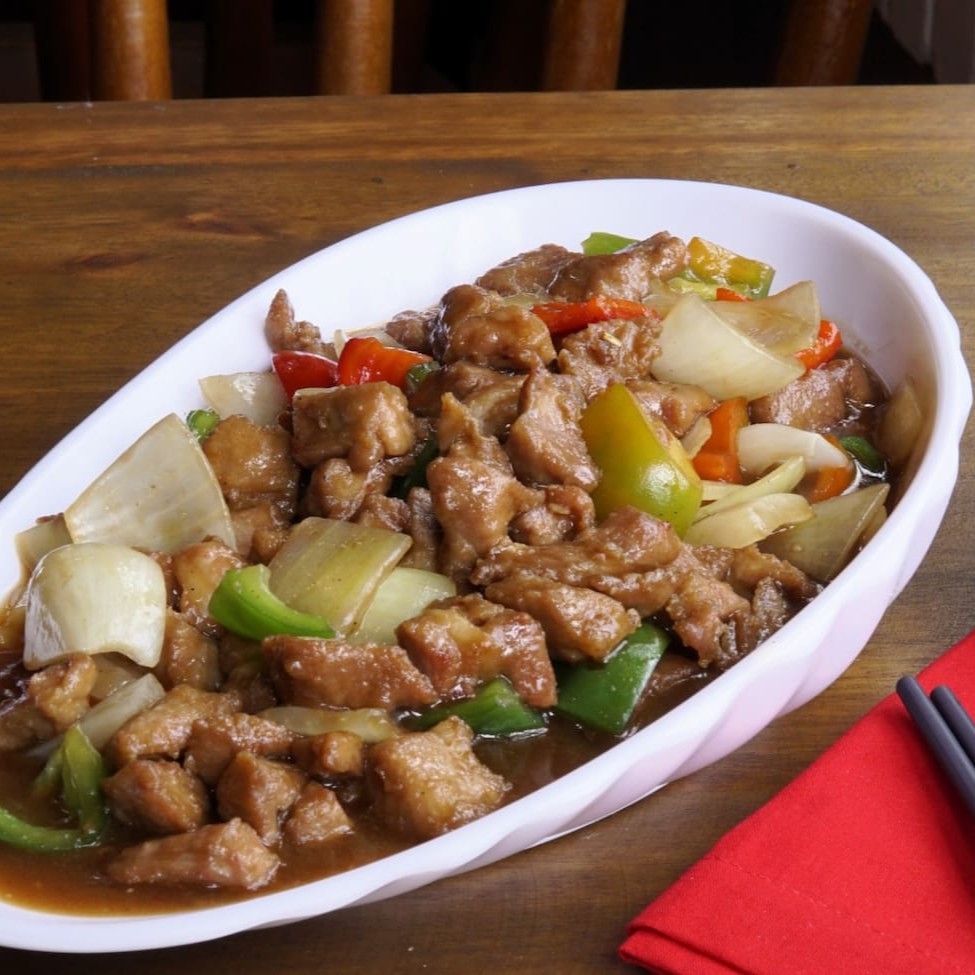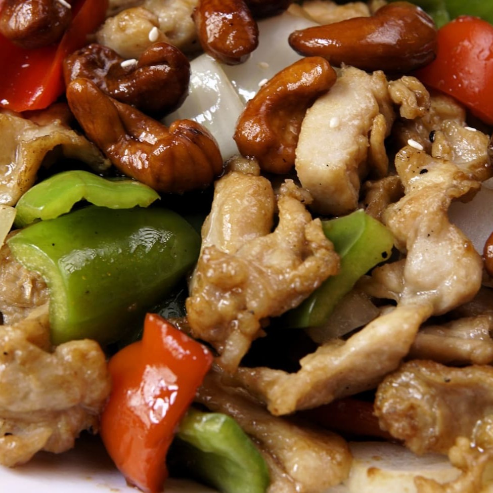 Saboreie o Frango Xadrez enriquecido com castanhas crocantes, proporcionando uma textura única e um sabor sofisticado.