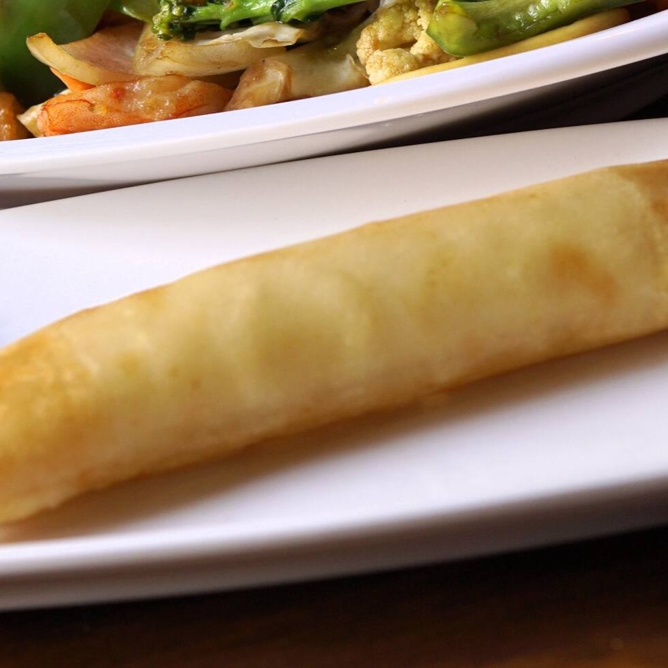 Delicioso rolinho primavera tradicional, crocante e recheado com ingredientes frescos, perfeito para abrir o apetite.
