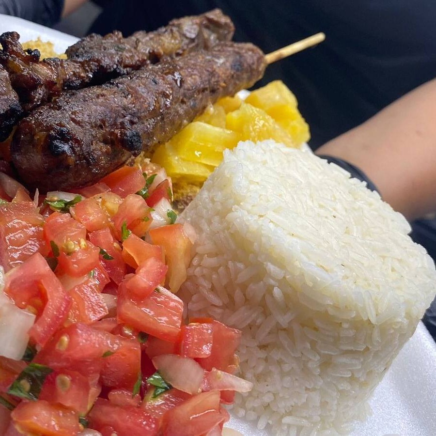 Delicie-se com a nossa 'Jantinha com Arroz Branco', um final perfeito para o seu Dia. Este prato traz uma porção generosa de arroz branco, cozido à perfeição e incrivelmente soltinho. Acompanhando, temos uma farofa temperada, de textura crocante e sabor riquíssimo. Para dar um toque de frescor, apresentamos um vinagrete vibrante, que traz um equilíbrio de acidez à refeição. E, para finalizar com maestria, escolha dois espetos ao seu gosto, preparados meticulosamente para garantir o máximo de sabor. Esta 'Jantinha com Arroz Branco' une simplicidade e sabor, proporcionando uma experiência culinária única a cada garfada.