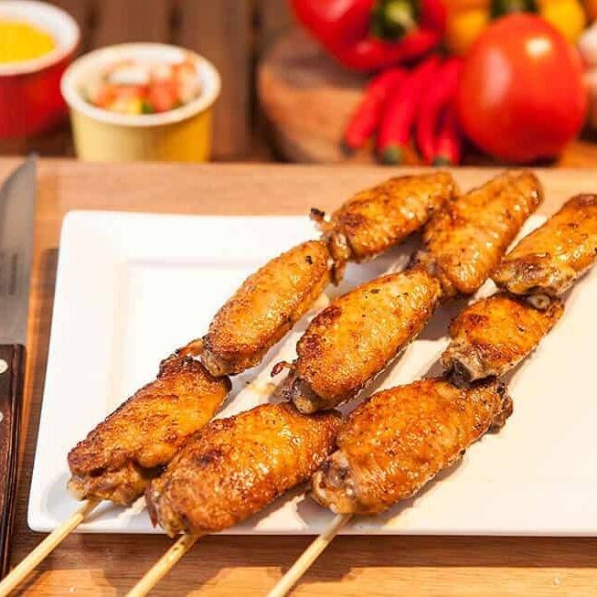 Delicioso espetinho de frango, cuidadosamente pesando 120 gramas. Cada pedaço é habilmente assado na brasa, proporcionando um sabor inigualável e irresistível que encanta os paladares mais exigentes. A textura suculenta do frango se une ao aroma defumado da brasa, criando uma experiência culinária inesquecível. Aprecie este espetinho, uma verdadeira obra-prima da cozinha de espetos.
