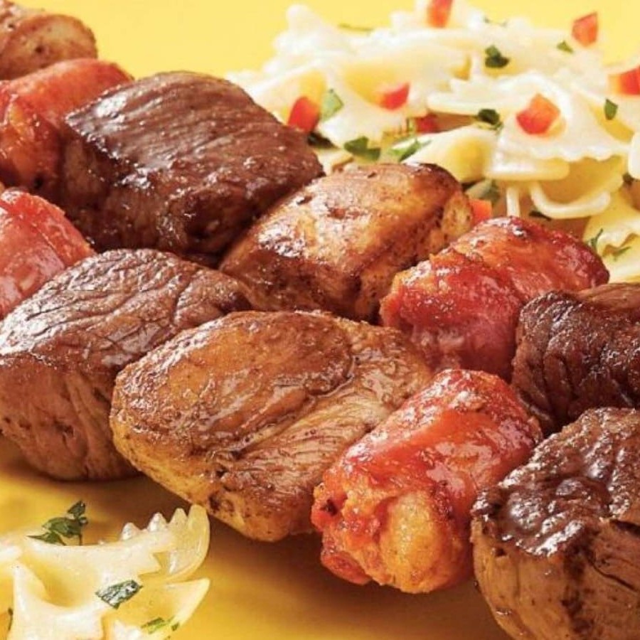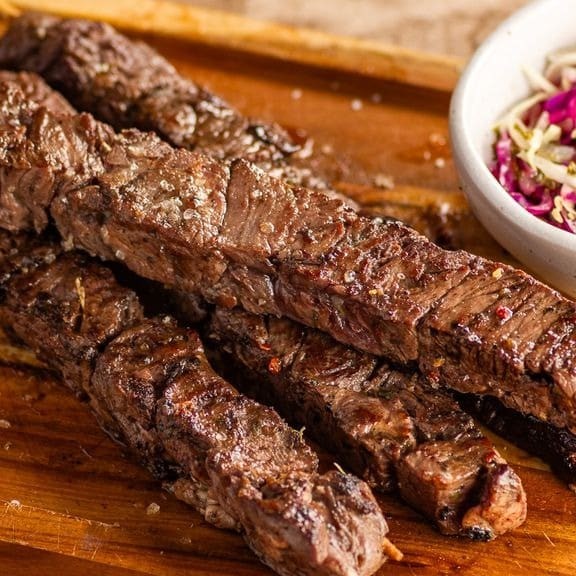 O 'Espetinho de Carne' é uma escolha divinamente saborosa da nossa categoria 'Espetinhos'. Com impressionantes 120 gramas de carne primorosamente selecionada, este espetinho é meticulosamente assado na brasa até alcançar o ponto de perfeição. A carne macia e suculenta, em harmonia com o sabor defumado e inconfundível da brasa, compõe um prato absolutamente irresistível. Essa fusão perfeita de sabor rico e textura impecável é projetada para encantar até os paladares mais sofisticados. Prepare-se para uma experiência culinária autêntica, intensa e inesquecível!