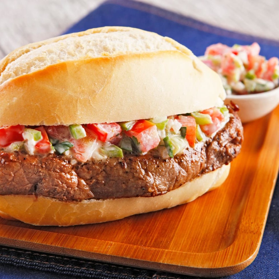 Desfrute do nosso 'Lanche de Frango', uma especialidade dentre os 'Lanches de Espetinho'. Este delicioso lanche é feito com um pão francês crocante e fresco, recheado com um generoso espeto de frango saboroso e bem temperado. Para dar um toque extra de sabor, adicionamos um vinagrete fresco de tomate e cebola, que traz um equilíbrio perfeito entre o doce e o ácido. Tudo isso é finalizado com o nosso exuberante molho da casa, segredo da nossa cozinha que adiciona um toque final irresistível ao lanche. Venha desfruta r dessa delícia!