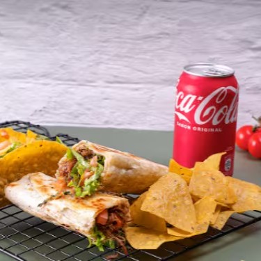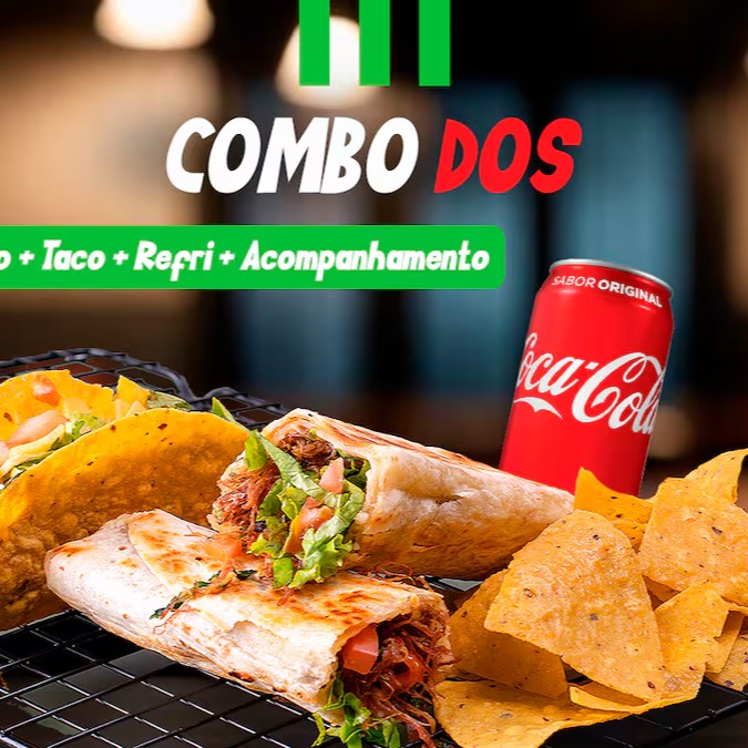Escolha o burrito e taco de sua preferência + 1 Refri 350ml + 1 porção de tortilha ou batata!