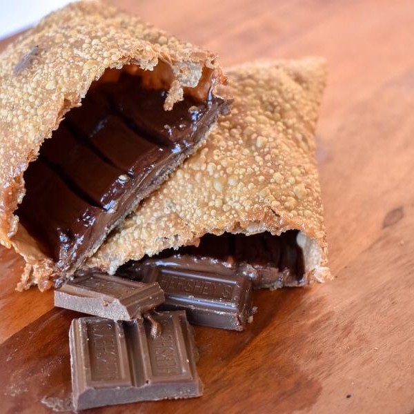 Delicioso chocolate ao leite e pedaços de bombom Ouro Branco derretido na nossa massa de cacau