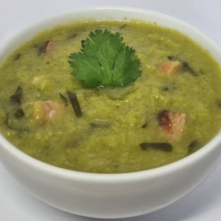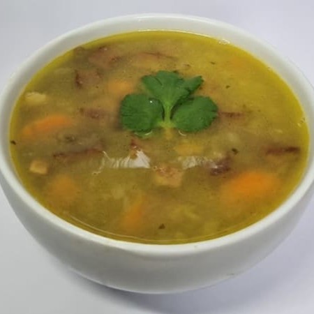 Caldo a base de ervilha, cenoura e calabresa. Porção de 500ml.