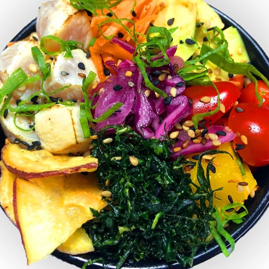 Aqui, o cliente é quem manda! Monte seu poke ou salada do jeitinho que quiser. São diversas opções de bases, proteínas, molhos, acomapanhamentos e toppings.