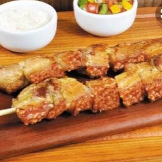 Pacote com 700 Gr 10 espetos cru de Panceta ( barriga suína ) já temperado. Foto ilustrativa