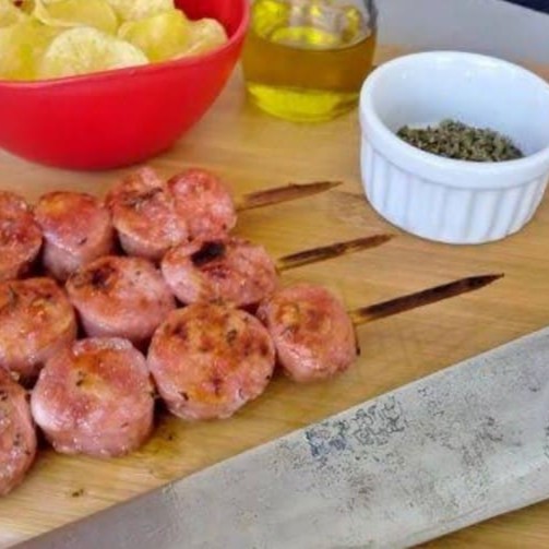 Pacote com 700gr 10 unidades de espetos cru de linguiça toscana. Foto ilustrativa