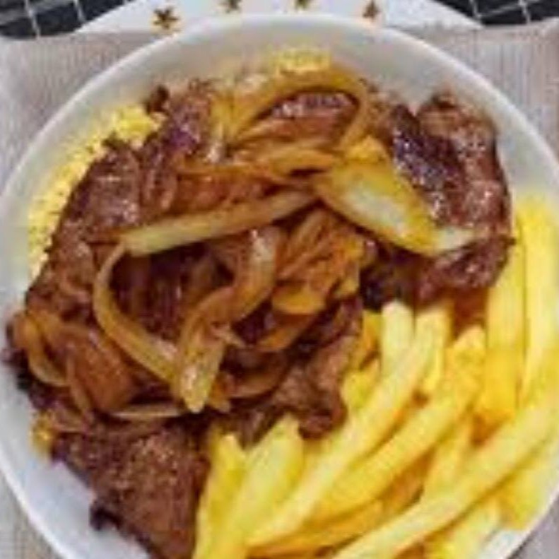 Marmitex De Contra Filé Acebolado Com Batata Frita