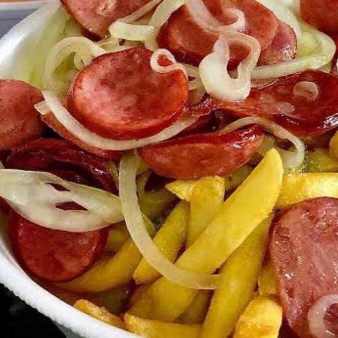 Marmita De Linguiça Calabresa Acebolada Com Ovo Frito