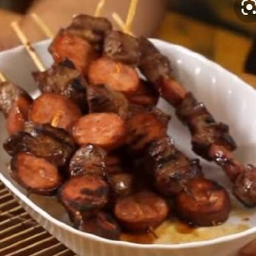 Pacote com 700 Gr 10 espetos cru de misto ( carne com linguiça) foto ilustrativa