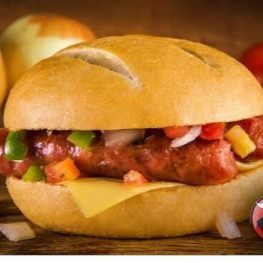 Pão francês com 1 espeto a sua escolha ,vinagrete , (maionese, ketchup sache separado ) .foto ilustrativa