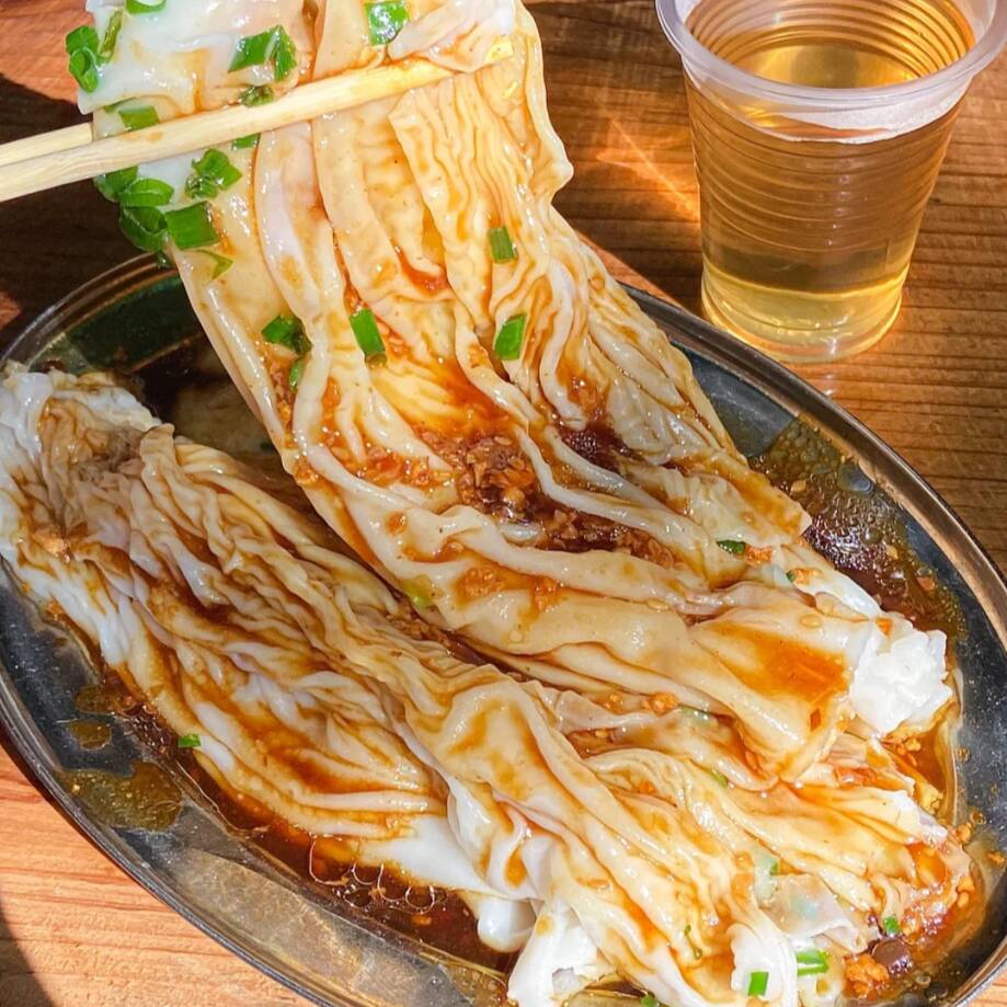 Massa de arroz feita á vapor com camarão