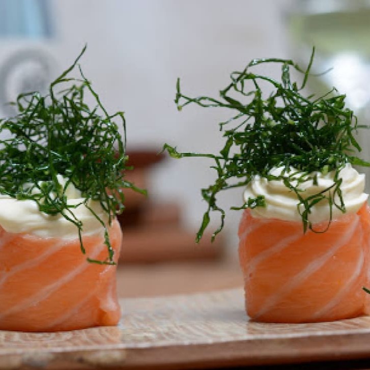 Anéis de salmão com cream chesse e cebolinha.