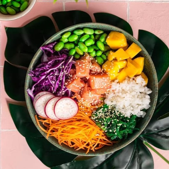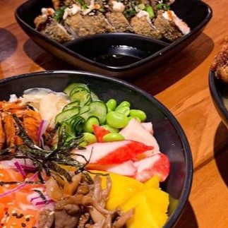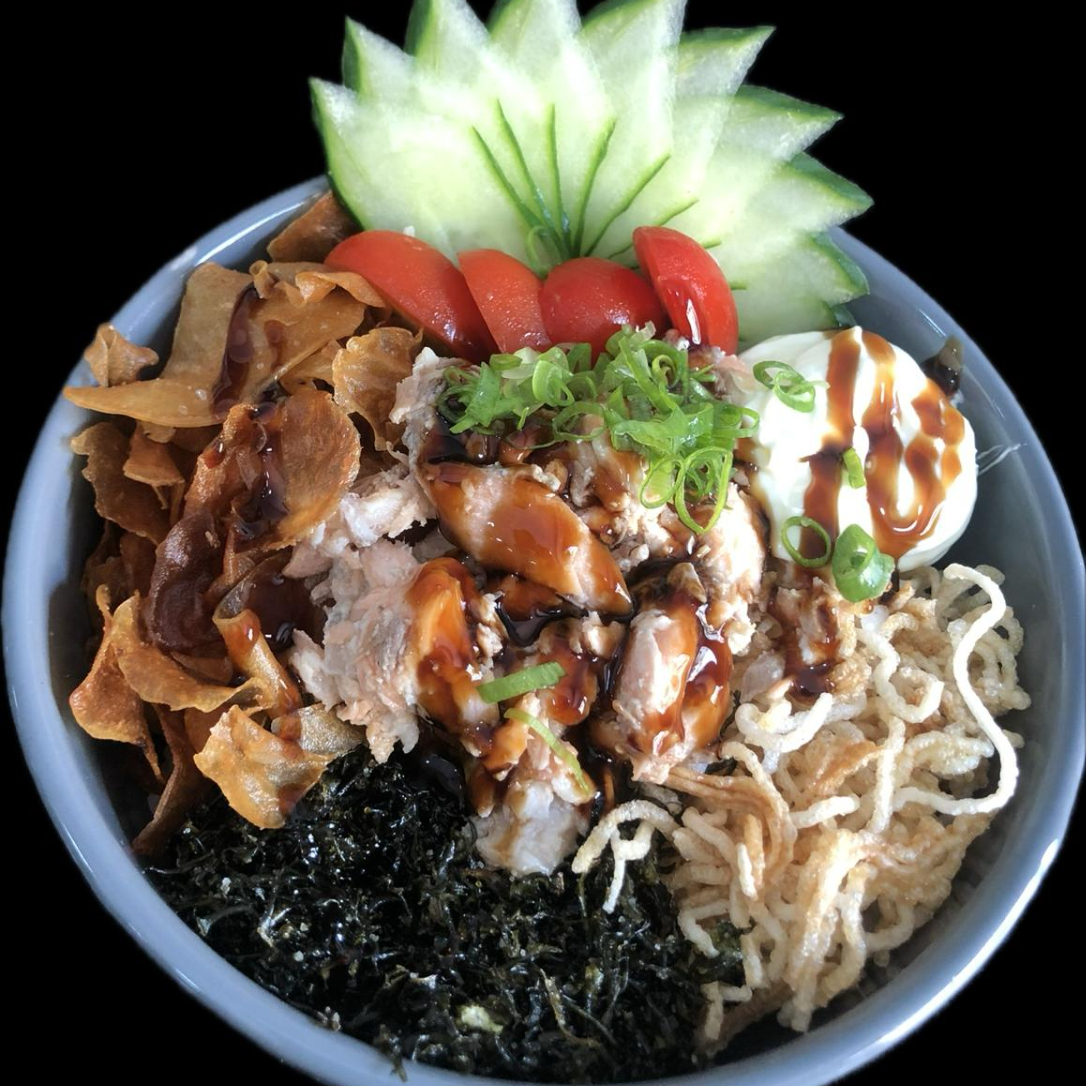 Shari,150 gr ceviche salmão ou atum,edamame,sunomono,cebola roxa ,couve frito ,gergelim,cebolinha,manga ou abacate.