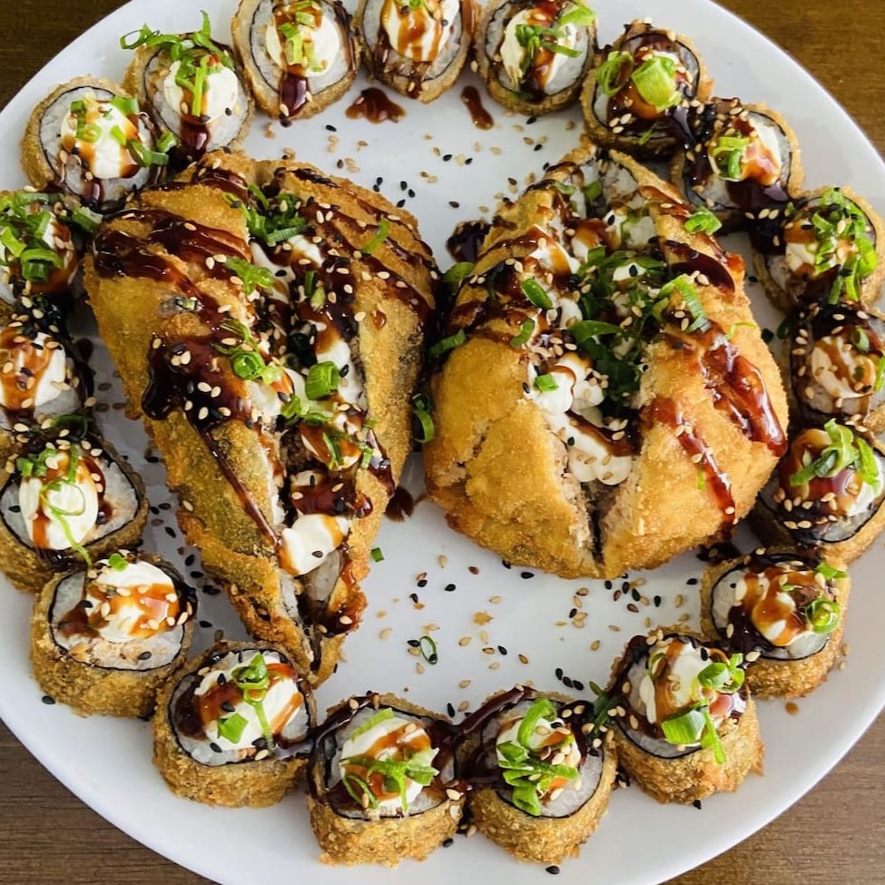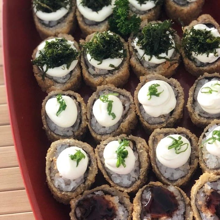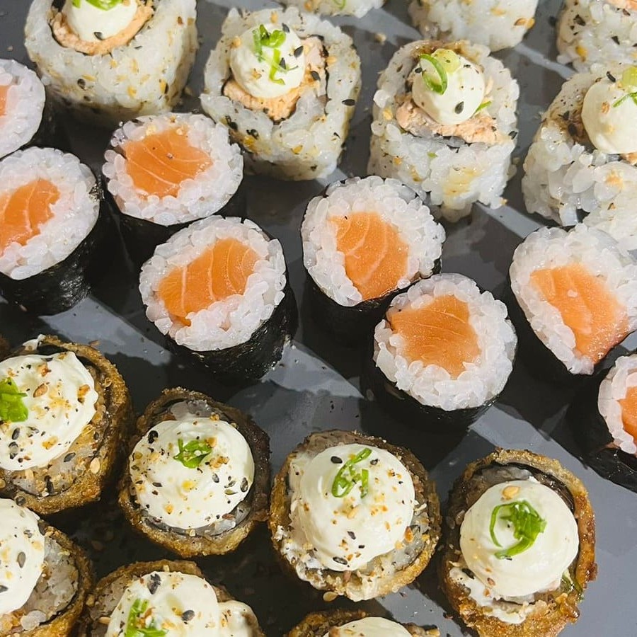 10 uramaki grelhado 10 hossomaki 10 hot roll obs: não alteramos as peças