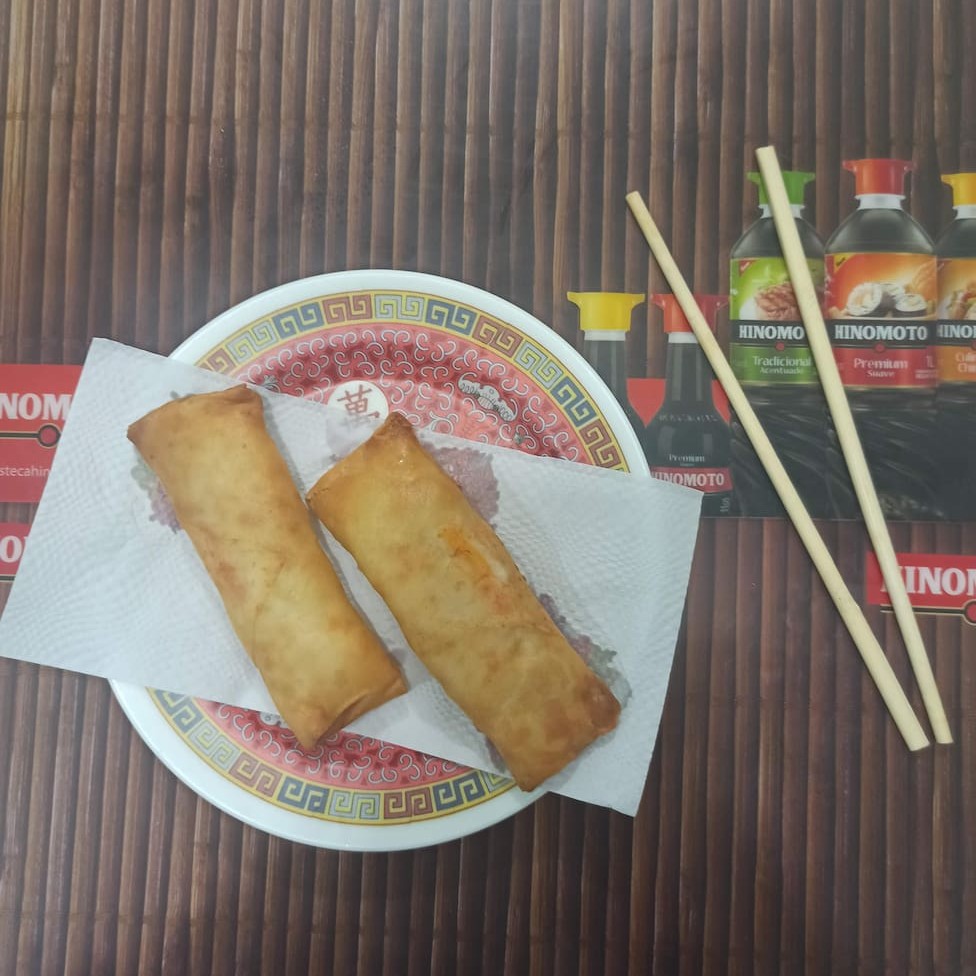Rolinho de massa crocante recheado com carne bovina, cenoura, repolho, cebolinha. 2 unidades