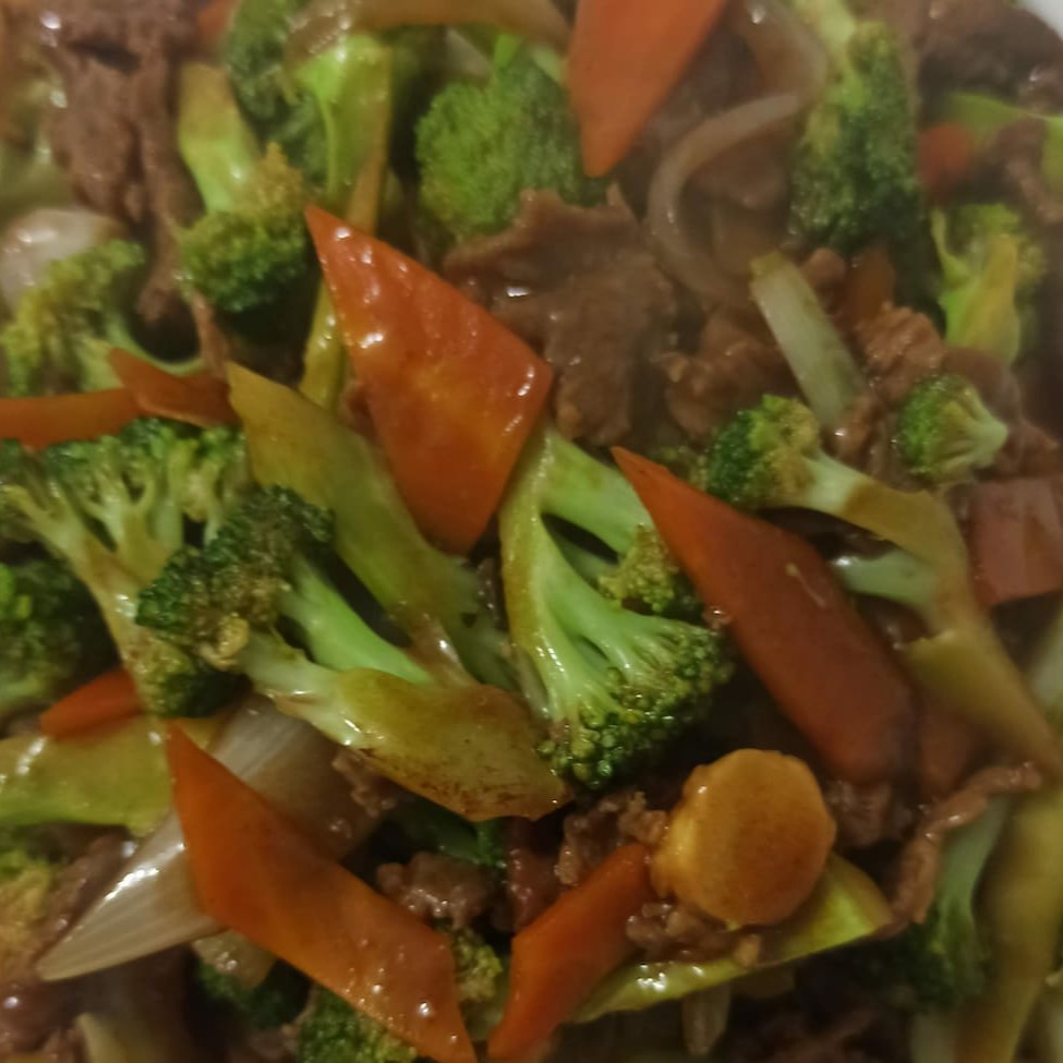 Carne bovina fatiada com brócolis temperada com molho de soja