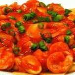 Camarões selecionados, champignon ao molho de tomate,com pimentão,cebola e gengibre picados, levemente picante.