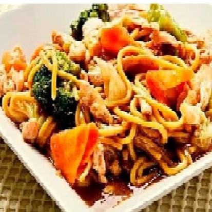 Macarrão chines , com tenros pedaços de carne , frango e legumes selecionados
