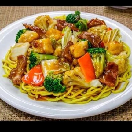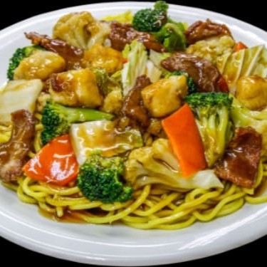 Macarrão chines ,carne, frango, camarão e legumes.