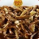 Carne desfiada com cebola desfiada ao molho de soja.