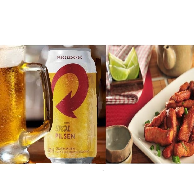 1 lombo frito ou frango a passarinho pequeno+ 3 cervejas Skol lata
