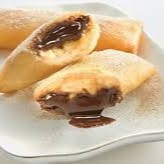 Massa fina crocante recheada com banana e chocolate, coberto com canela e açúcar.