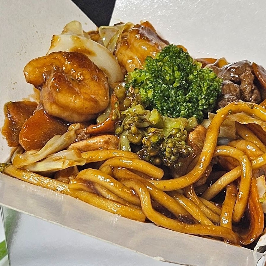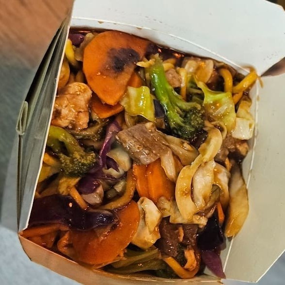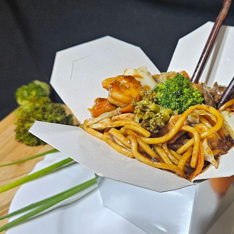 Apresentamos nosso aclamado Yakisoba Misto Grande de 1 kg. Este prato é uma harmoniosa combinação do clássico macarrão oriental, finamente cozinhado, com suculentos pedaços de carne e frango. Para completar, é generosamente acompanhado por uma vibrante seleção de legumes frescos, cuidadosamente escolhidos. Uma verdadeira explosão de sabores que irá transportá-lo diretamente para as tradicionais ru