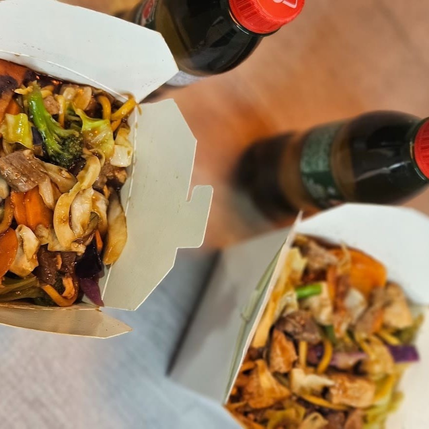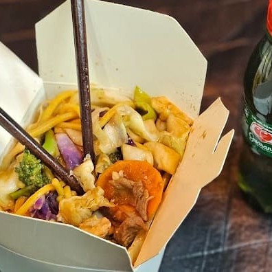 Combo 1 yakisoba 600g frango, misto ou carne + 1 Coca-Cola lata de 350 ml, serve até 1 pessoa (aprox. 600g)