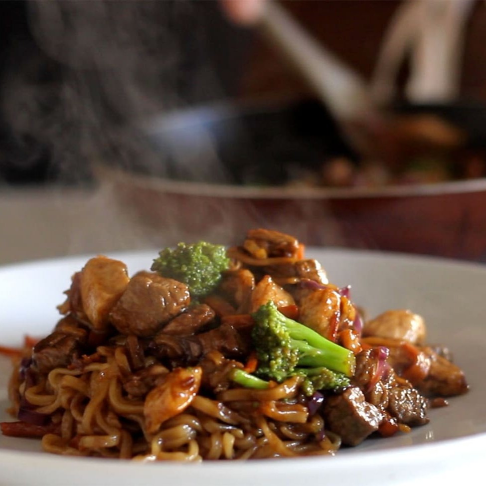 Combinação especial do nosso macarrão oriental com carne, acompanhado por...